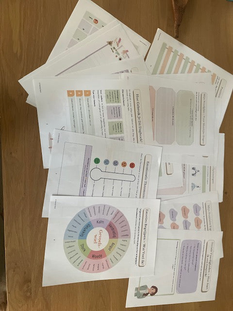 De toolkit bevat meer dan 50 printbare werkbladen, planners, trackers en oefeningen rond emotieregulatie, zelfvertrouwen, stressmanagement en sociale vaardigheden.